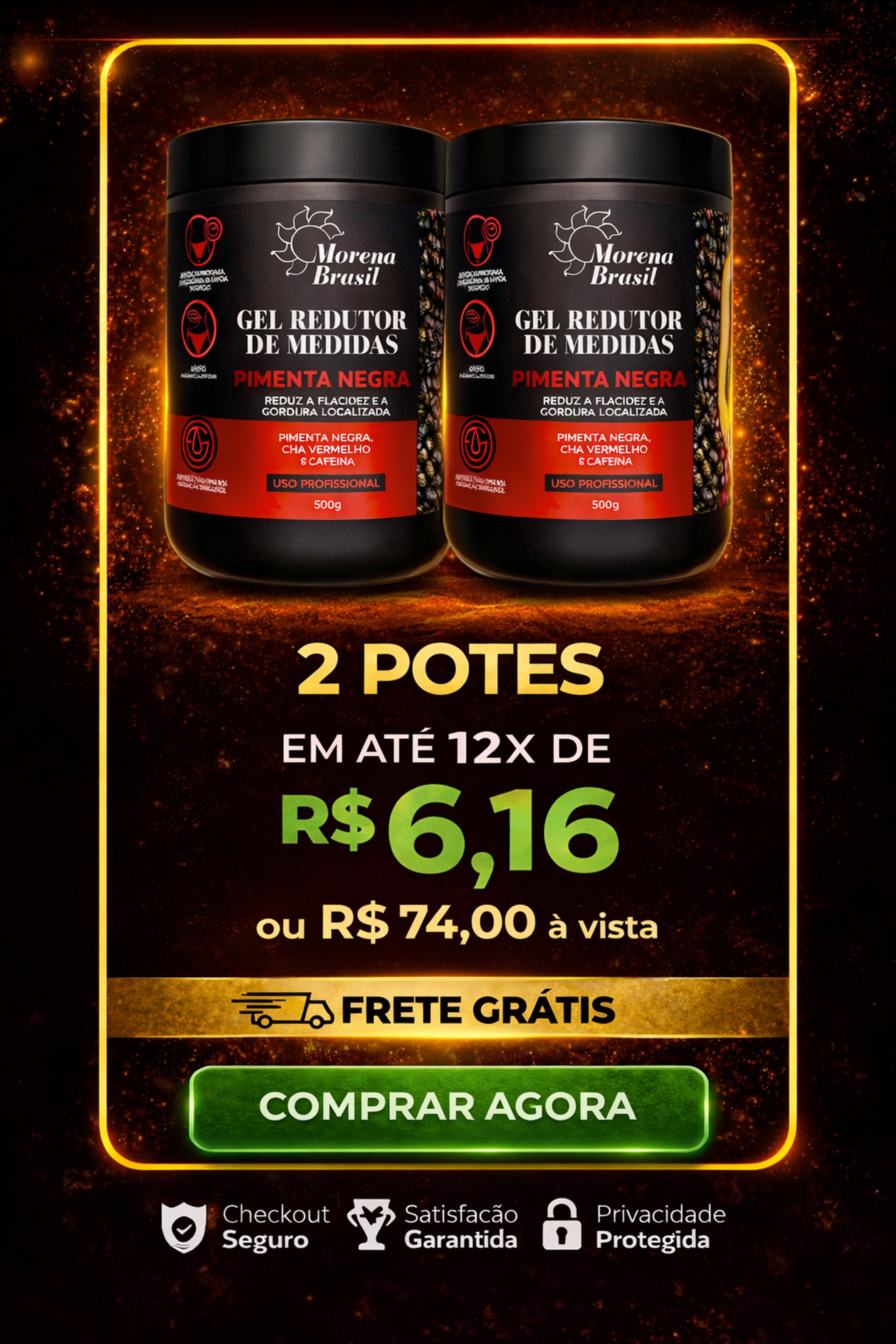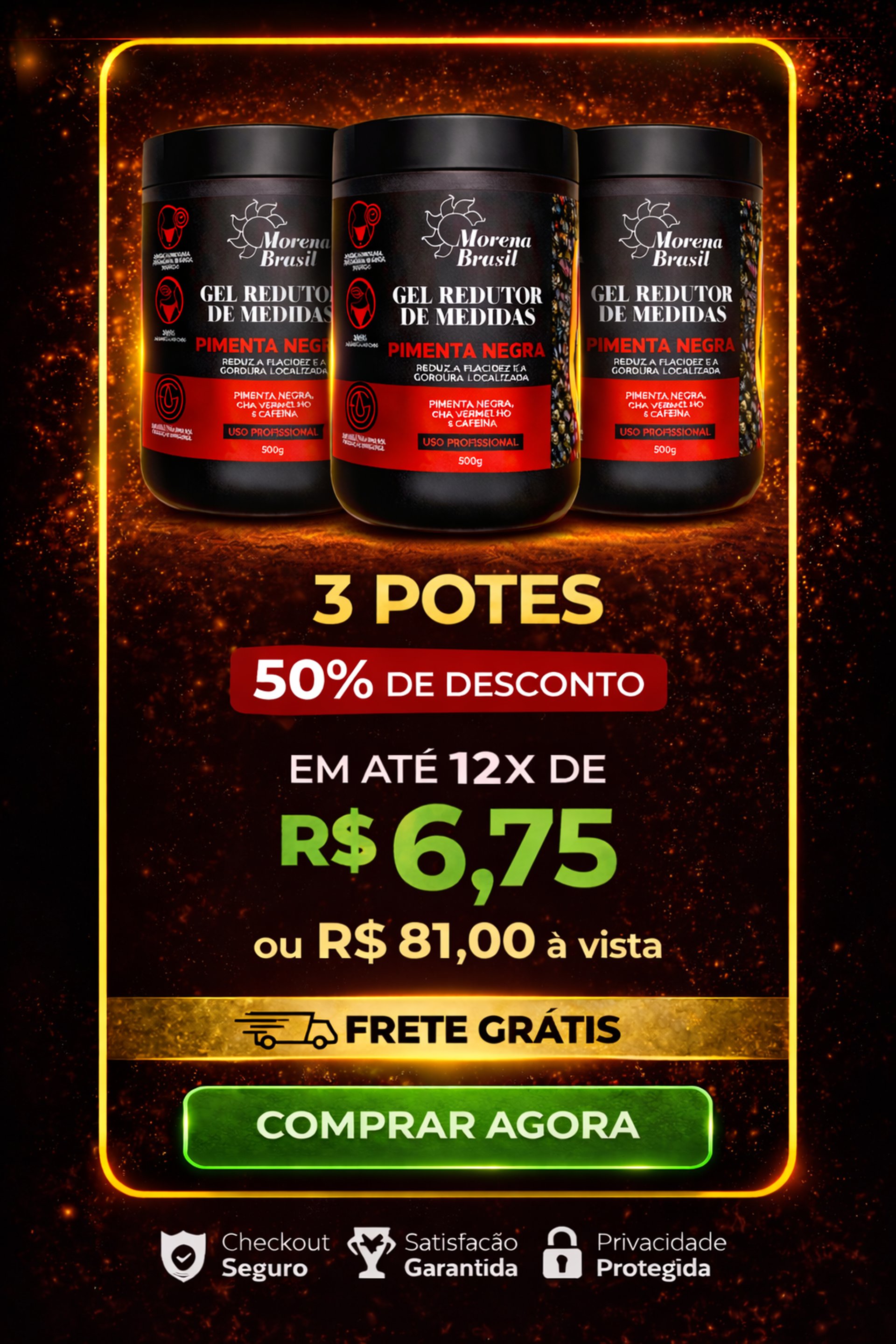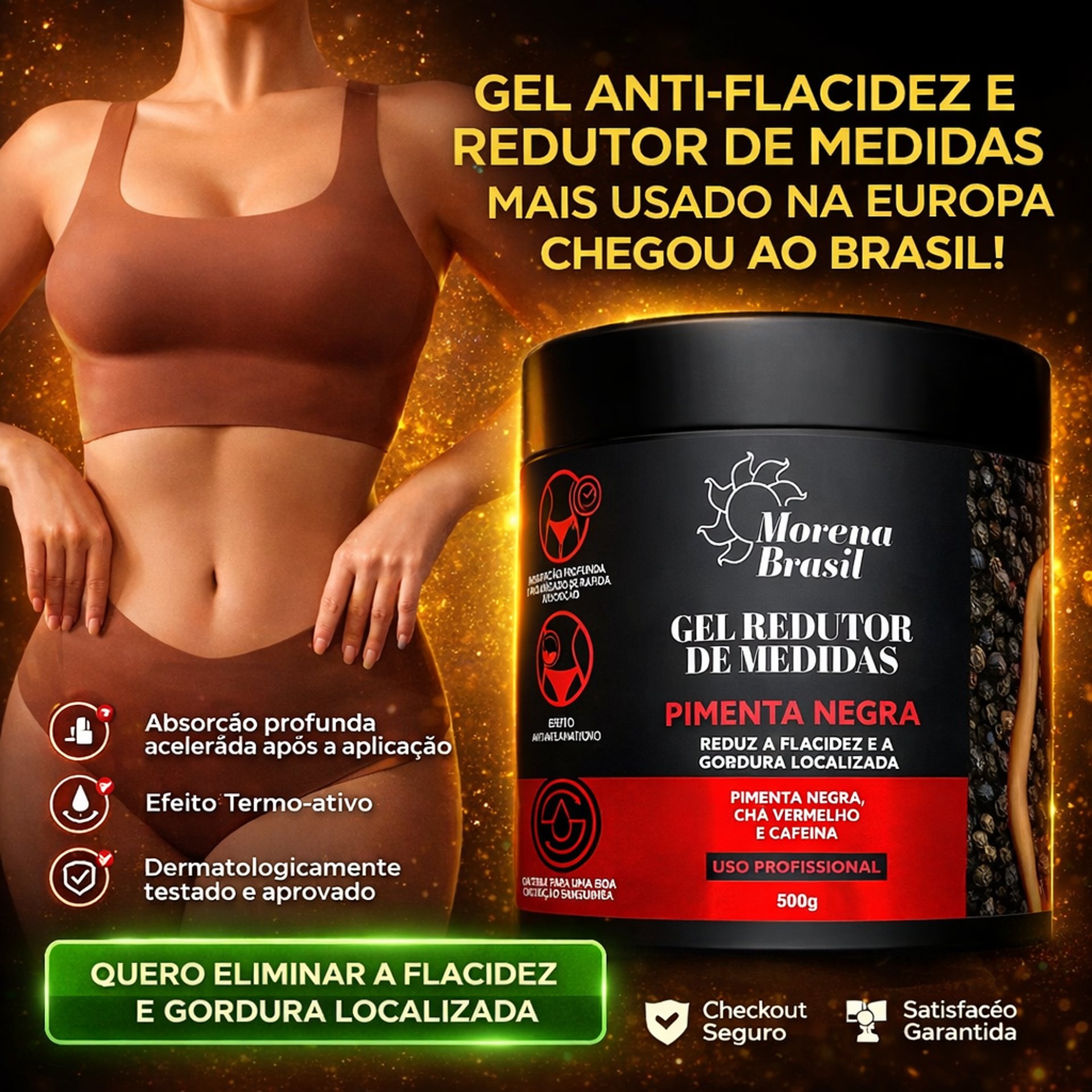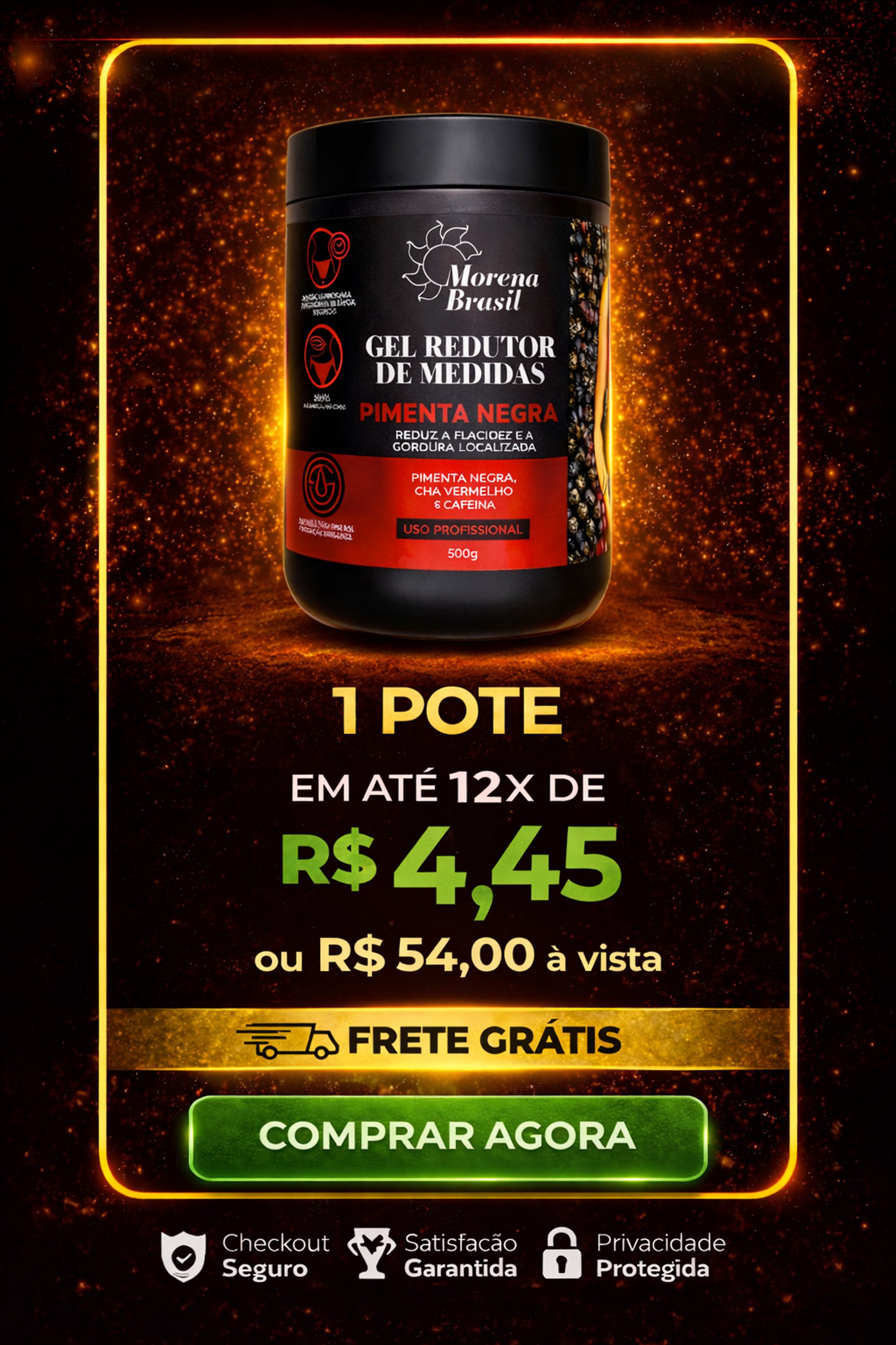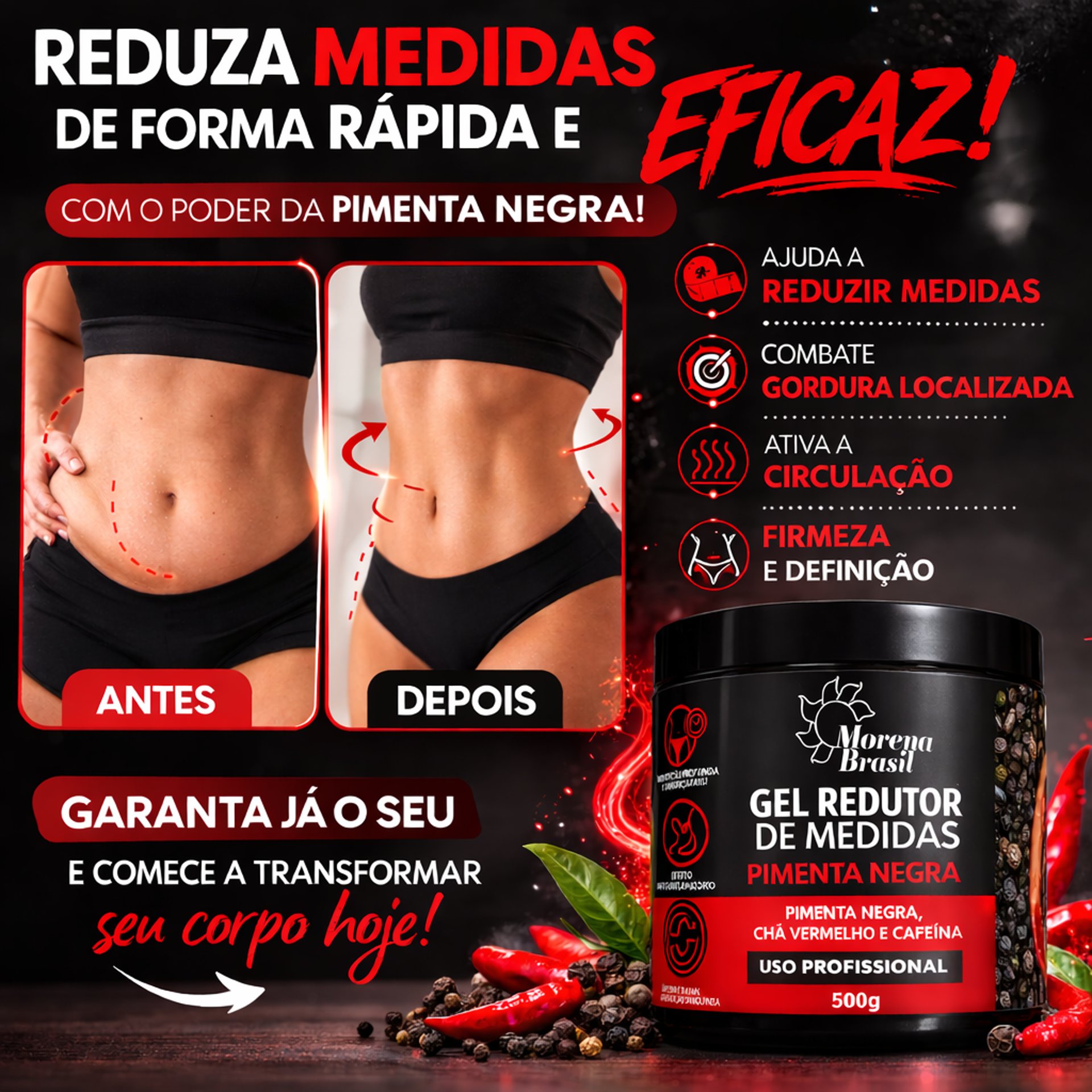 O Gel Redutor de Medidas Pimenta Negra da Morena Brasil foi desenvolvido com um blend de ativos naturais que auxiliam na redução de medidas, melhora da circulação e aparência da pele.